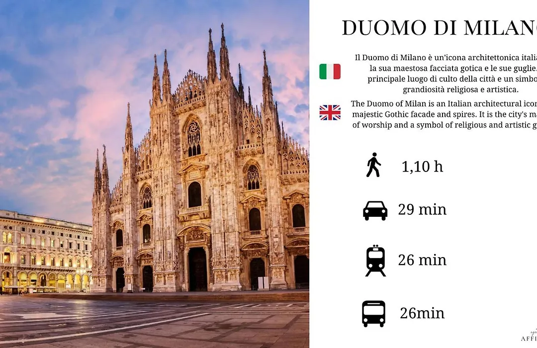 Le Musée des sciences et des techniques Léonard de Vinci se trouve à moins de 3 km de l'appartement, tandis que La Cène est à 3 km. Le centre-ville est à seulement 5 km, et l'aéroport de Milan-Linate est à 15 km.